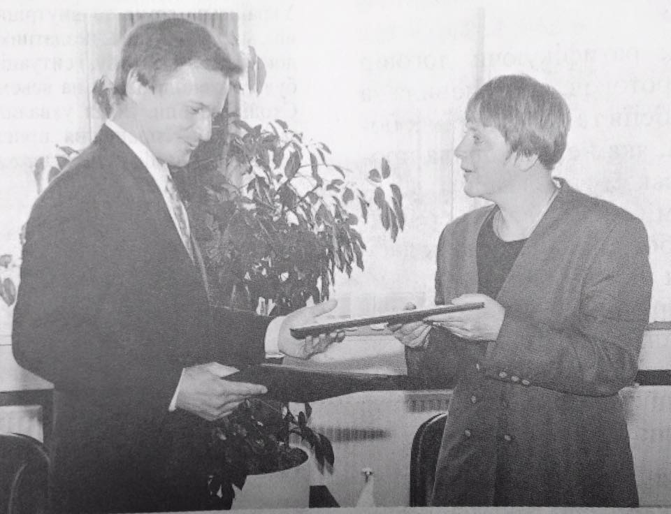 Angela Merkel (Ministry for the Environment, Nature Conservation, and Nuclear Safety of Germany) and Yuriy Kostenko (Ministry for the Environment, and Nuclear Safety of Ukraine, head of workgroup of ratification START I ) in 1994