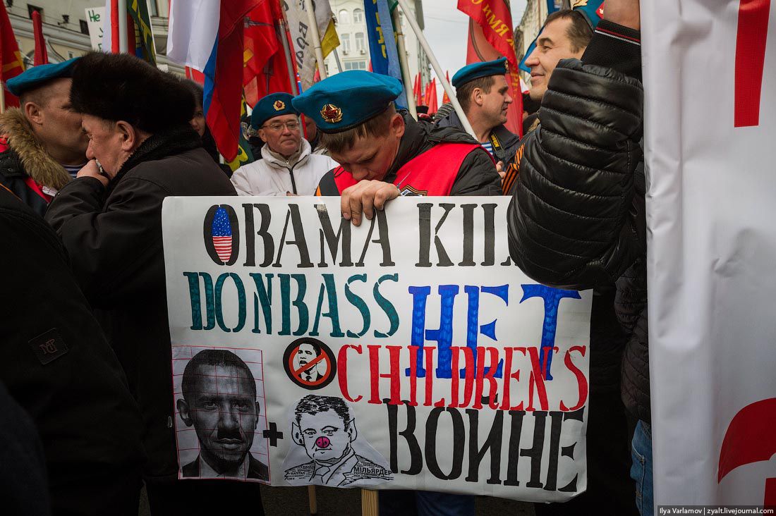 “Putin, send army to Slovyansk!” (Slovyansk is the Ukrainian city captured by Russian troops in April 2014. It was the main terrorist base until July 2014, when Ukrainian army liberated the city)