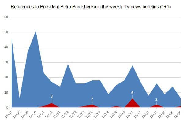 The rest of the mentions (751) were positive or neutral. The channel mentioned Poroshenko especially often when quoting Yuri Lutsenko, the Prosecutor General, who led the Petro Poroshenko Bloc until May 2016. Lutsenko was mentioned 71 times in connection with the president. For instance, Yatseniuk (the prime minister for most of the analysed time) was mentioned 119 times in connection with Poroshenko.